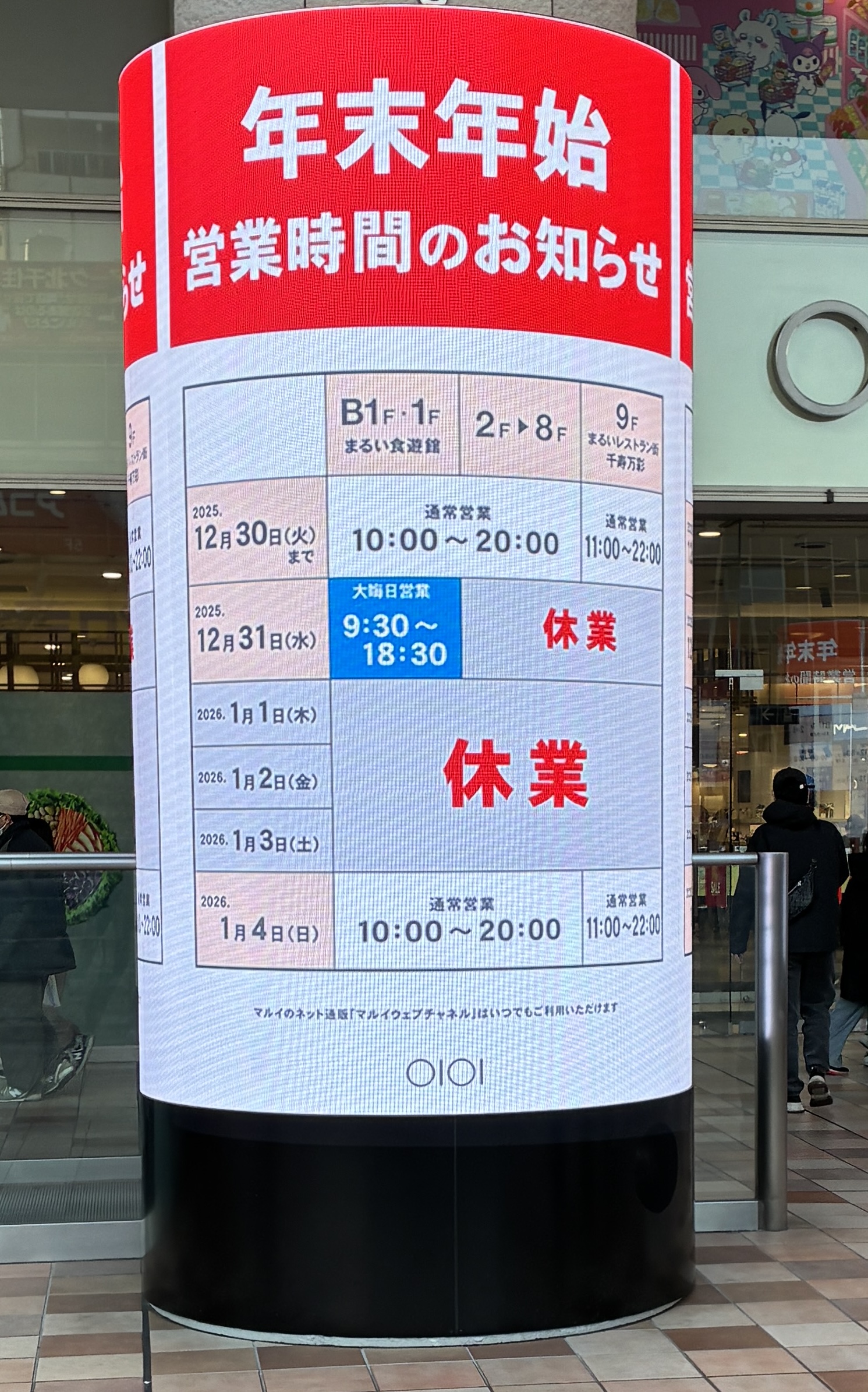 → 1/1休館、1/2・1/3は通常に近い営業 - 北千住マルイ